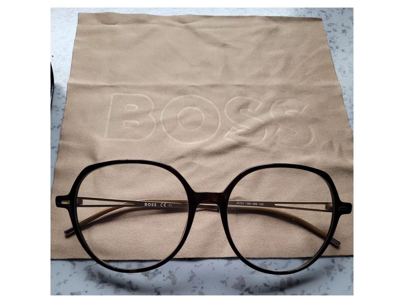 Monture Boss mixte métal et plastique doree marron avec son coffret.