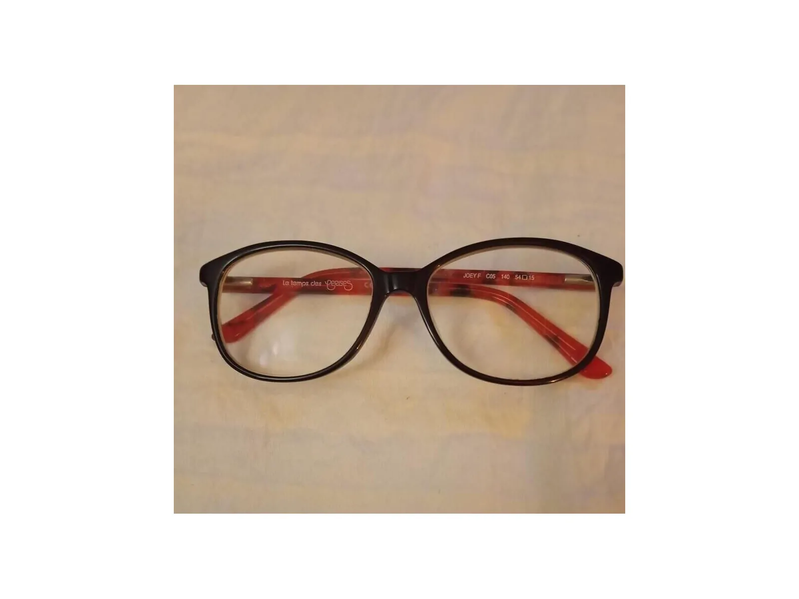 Monture optique le temps des cerises en très bon état. Noire et rouge