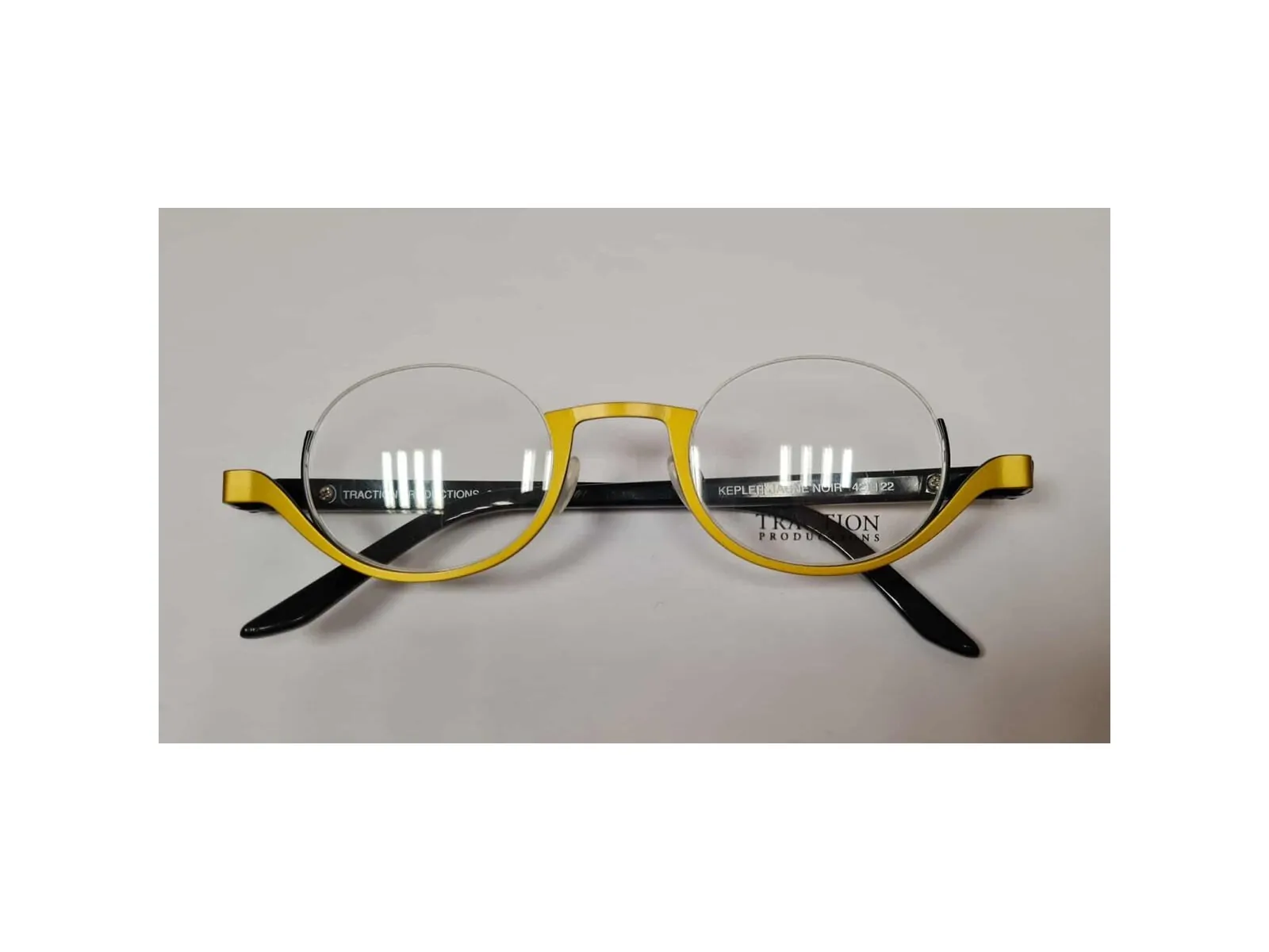 Monture originale avec cette ouverture sur le dessus et un jaune plus ou moins sombre selon les reflets.