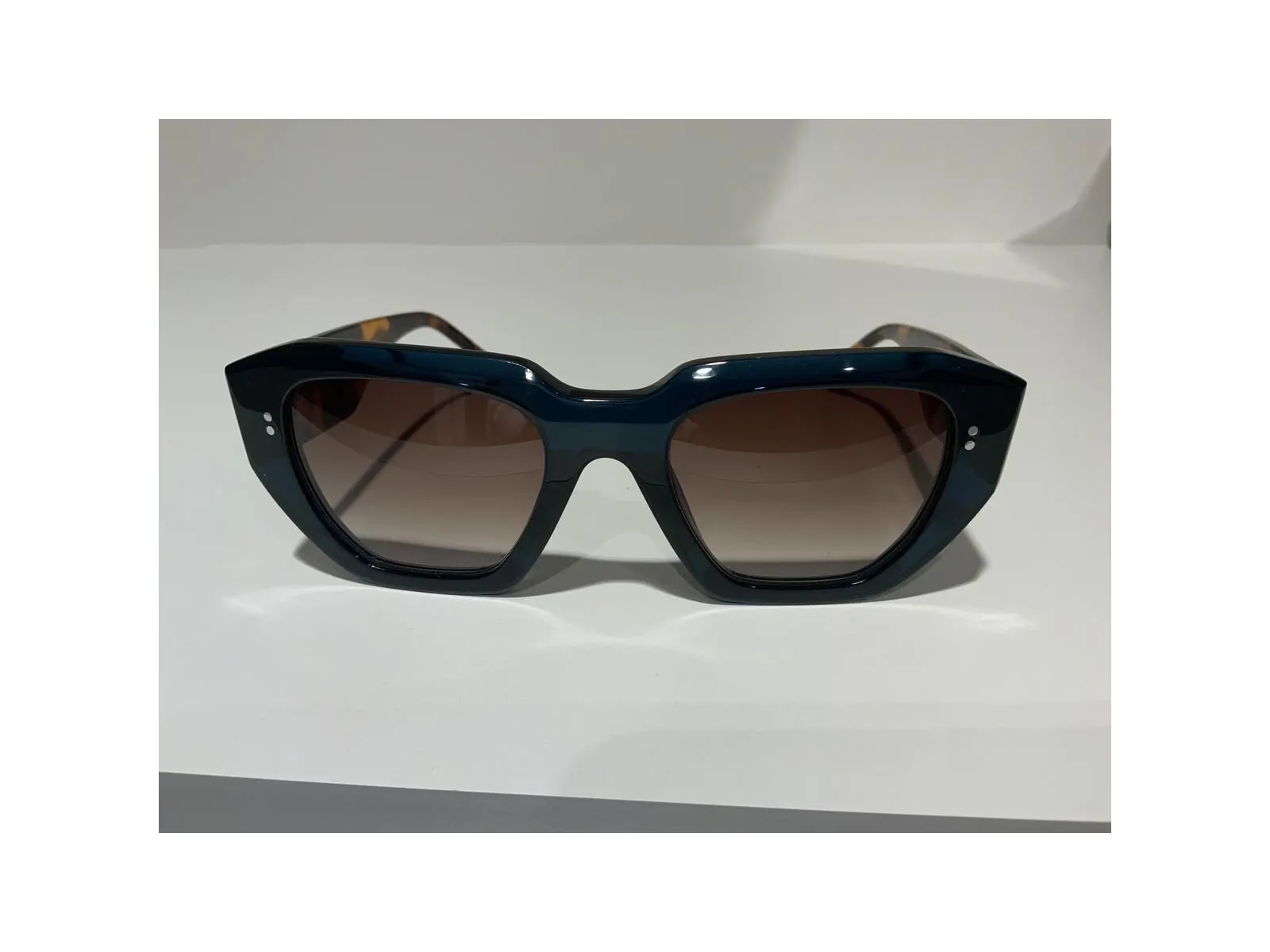 Monture en plastique femme bleu, branches écailles, verres brun c
