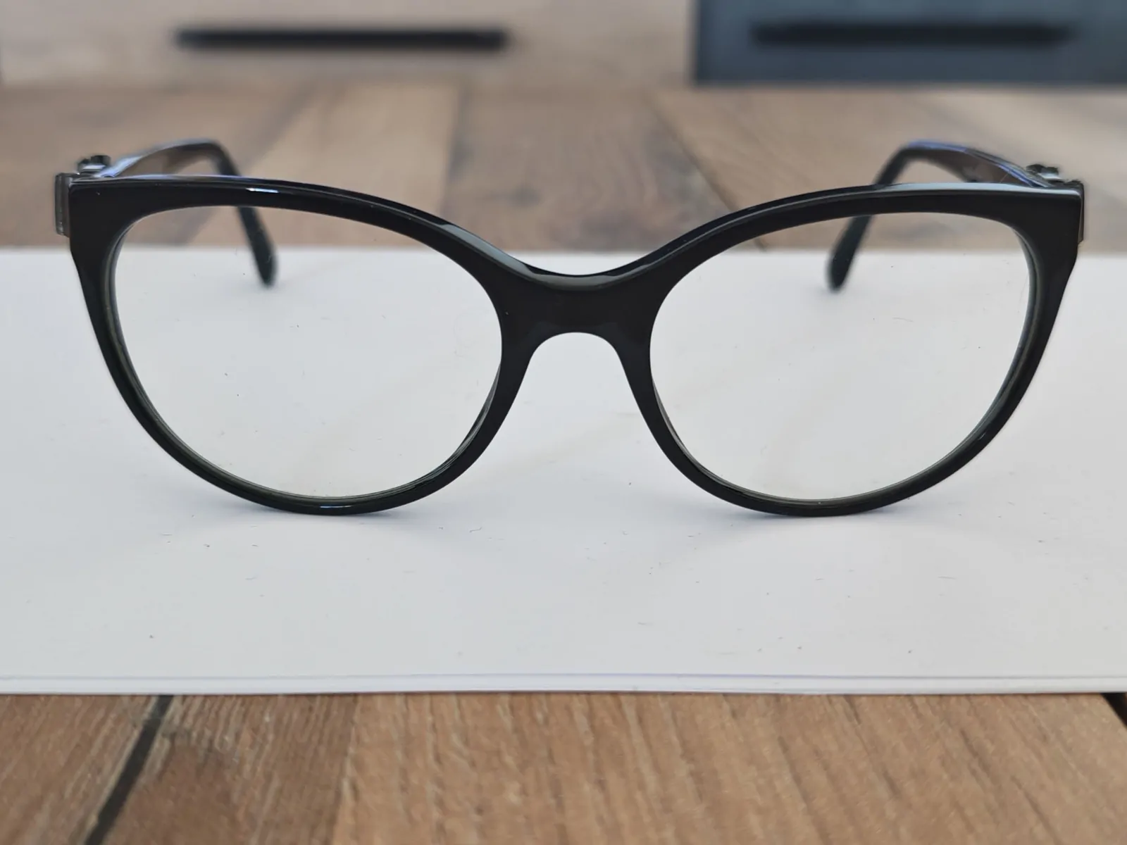 Belle forme légèrement papillon, très flatteuse, avec détail iconique CC Chanel sur les branches.