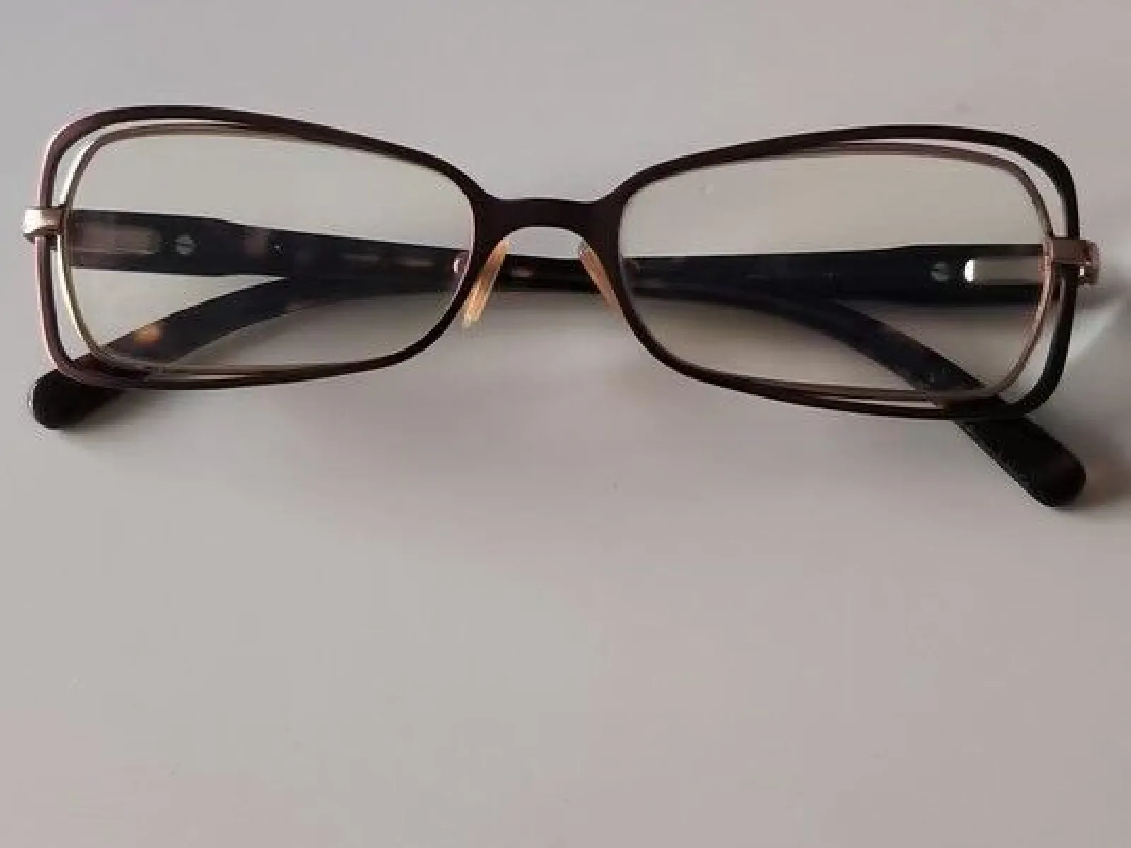 Monture optique avec verres correction vue de près, couleur bronze et or, en bon état