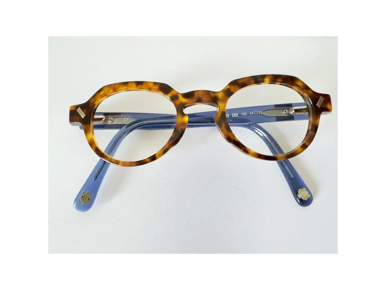 Note : La couleur exacte (écaille marron/ambre et bleu vif) est visible sur les photos. Un équipement et un réglage par un opticien sont nécessaires pour un port parfait.