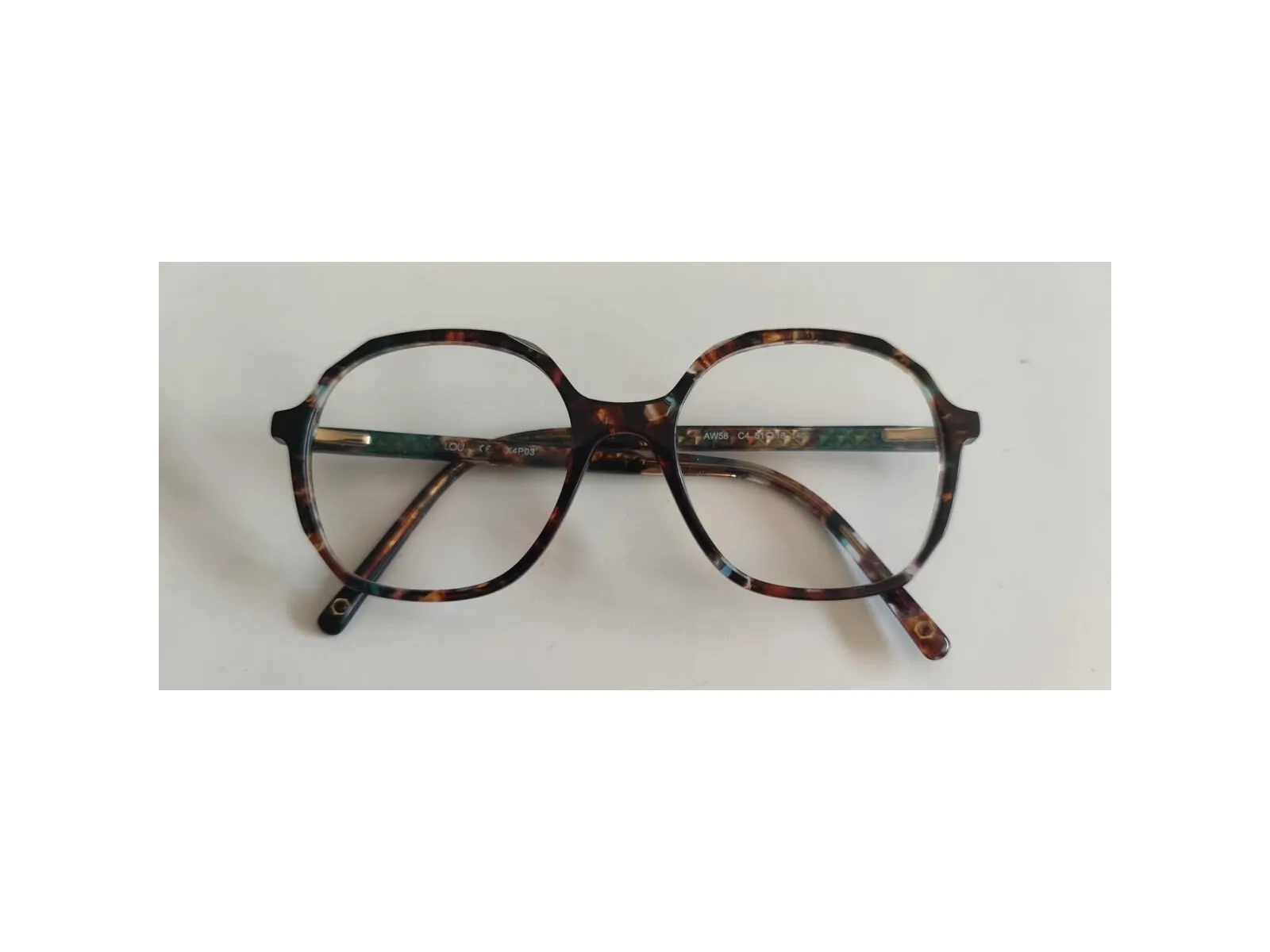 Monture couleur écaille avec un peu de vert- bleu par endroit