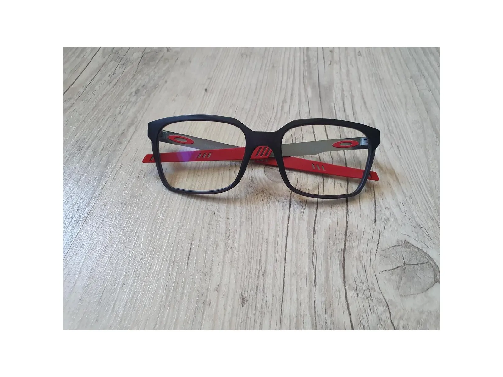 Monture en plastique et métal noir/gris/rouge.