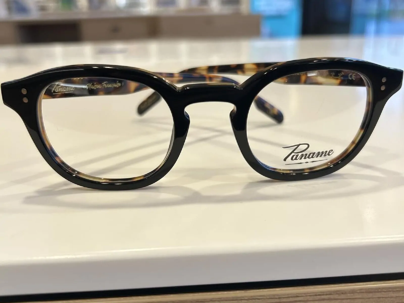 Monture en acétate noire, intérieur écaille