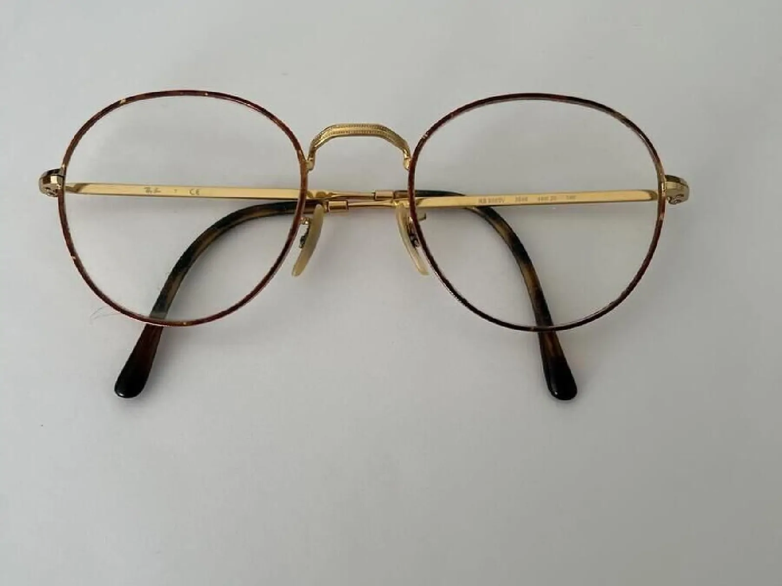 Monture or et un peu écaillé marron autour des verres, très bon état, taille entre les branches 130mm