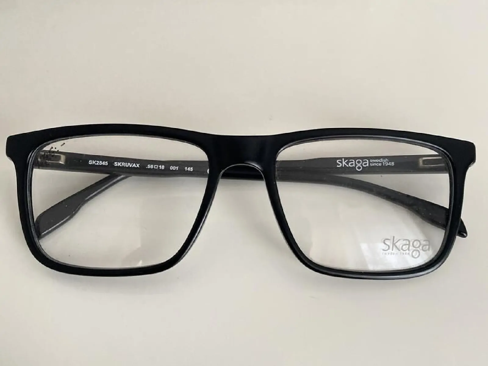 Lunettes de vue rectangulaires noires, monture classique et élégante. Marque Skaga (Sweden, depuis 1948). Modèle sobre, confortable et solide.