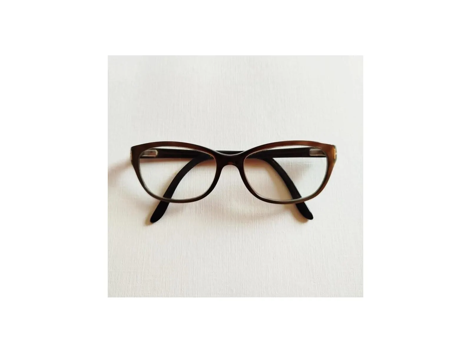 Très belle monture Tom Ford en Polyacétate avec reflets doux verts fonces et chocolat. Solide monture. Vendue avec son boîtier