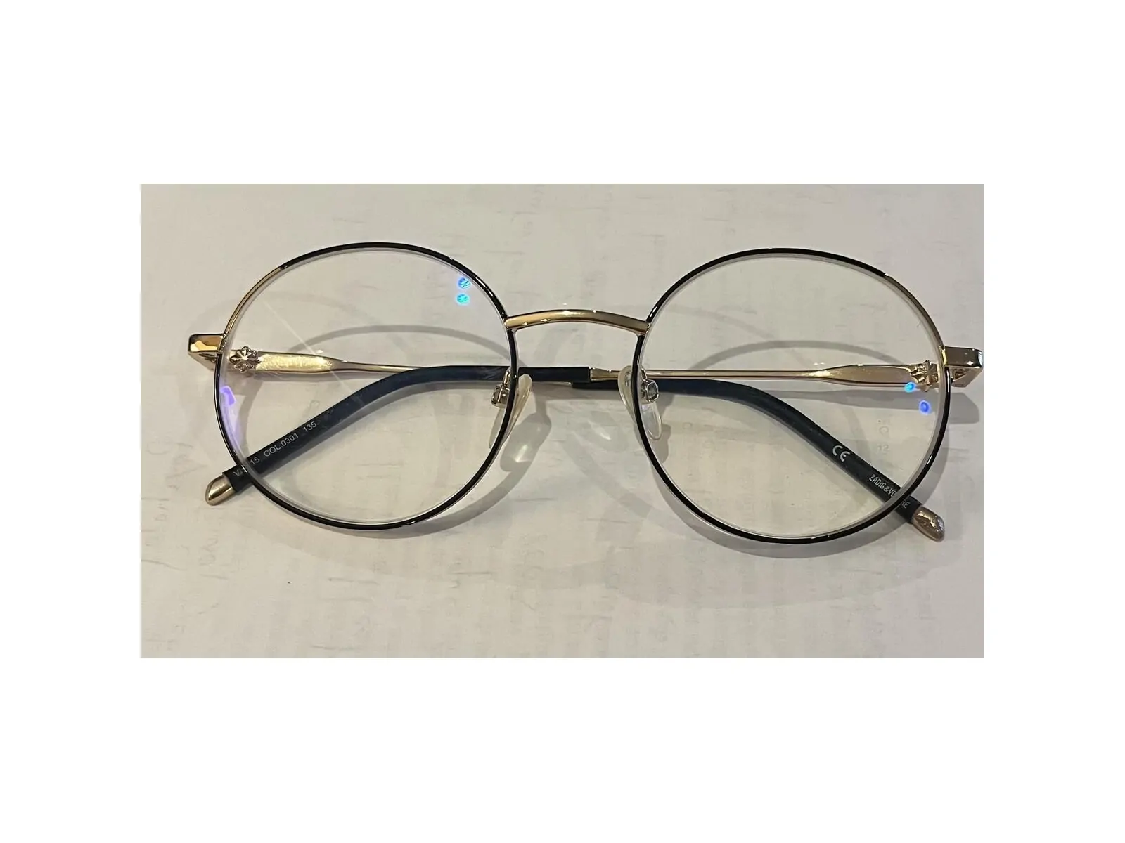 Monture fine dorée et noire.
