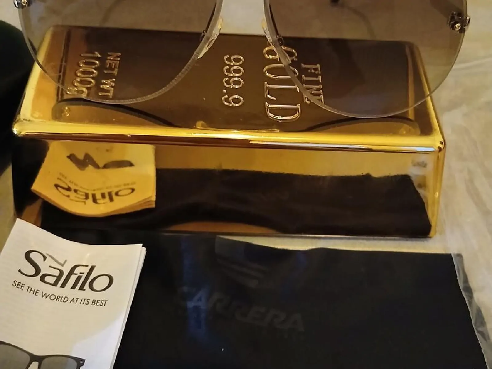 Livrée avec son étui rigide original Carrera, son pochon microfibre de protection, et le livret de garantie Safilo. L'ensemble est encore sous scellé.