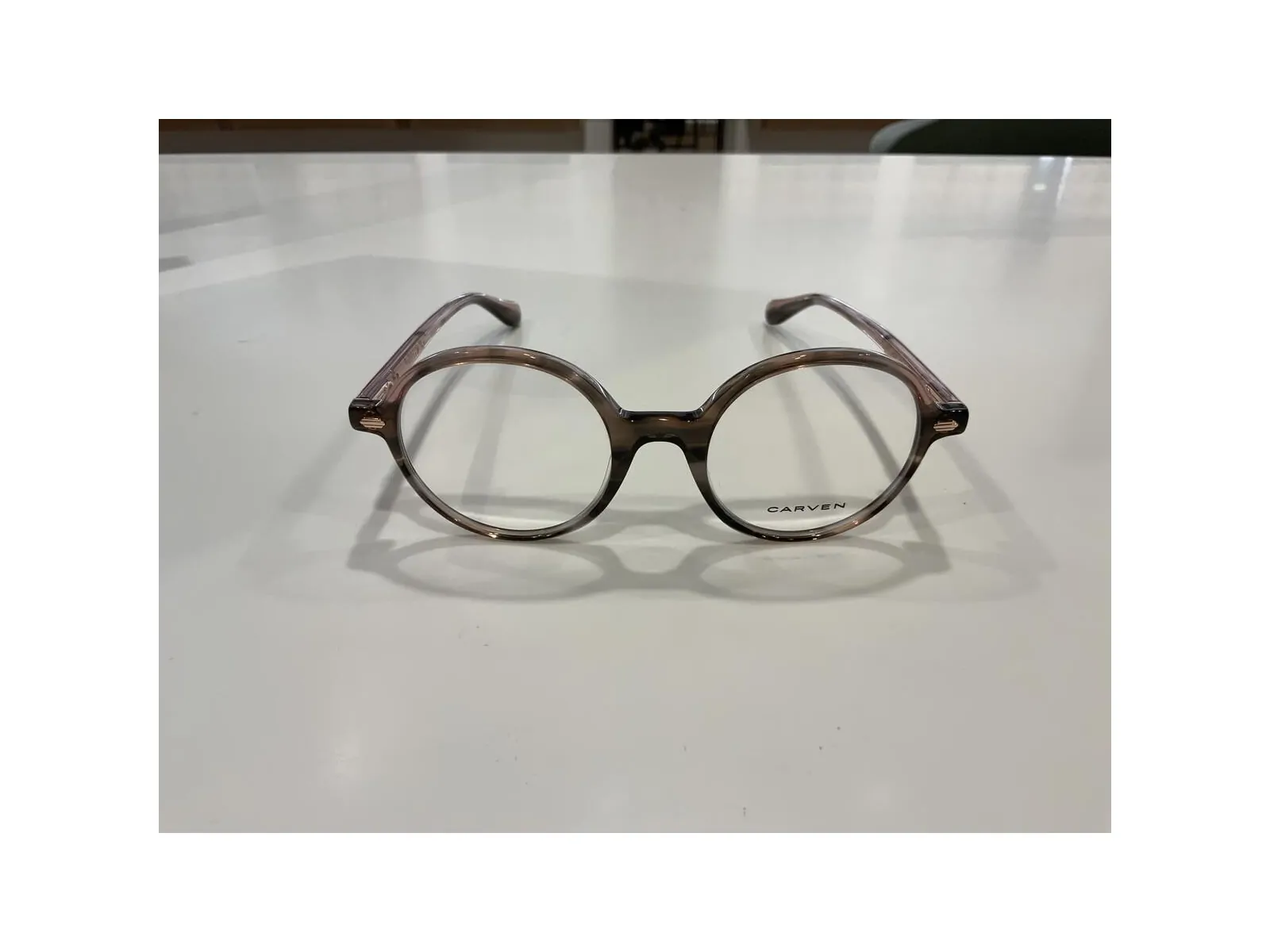 monture optique ronde marron clair et rose en plastique