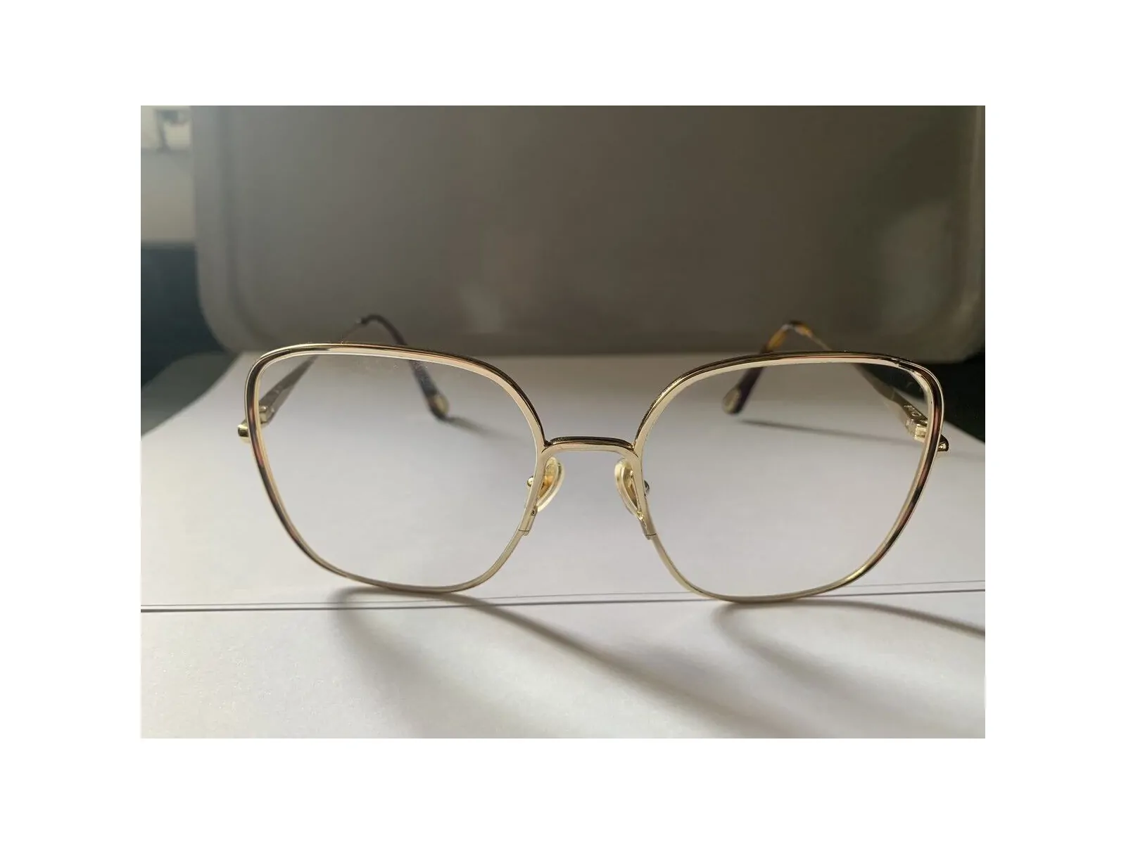 La monture est en très bon état car vraiment très peu utilisée. Elle est en grande partie dorée mais le tiers des branches est en écaille.