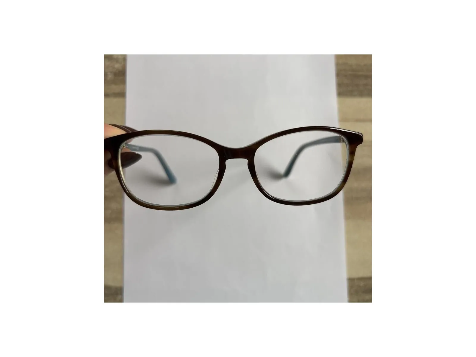 La monture est marron à l’extérieur et bleue à l’intérieur.