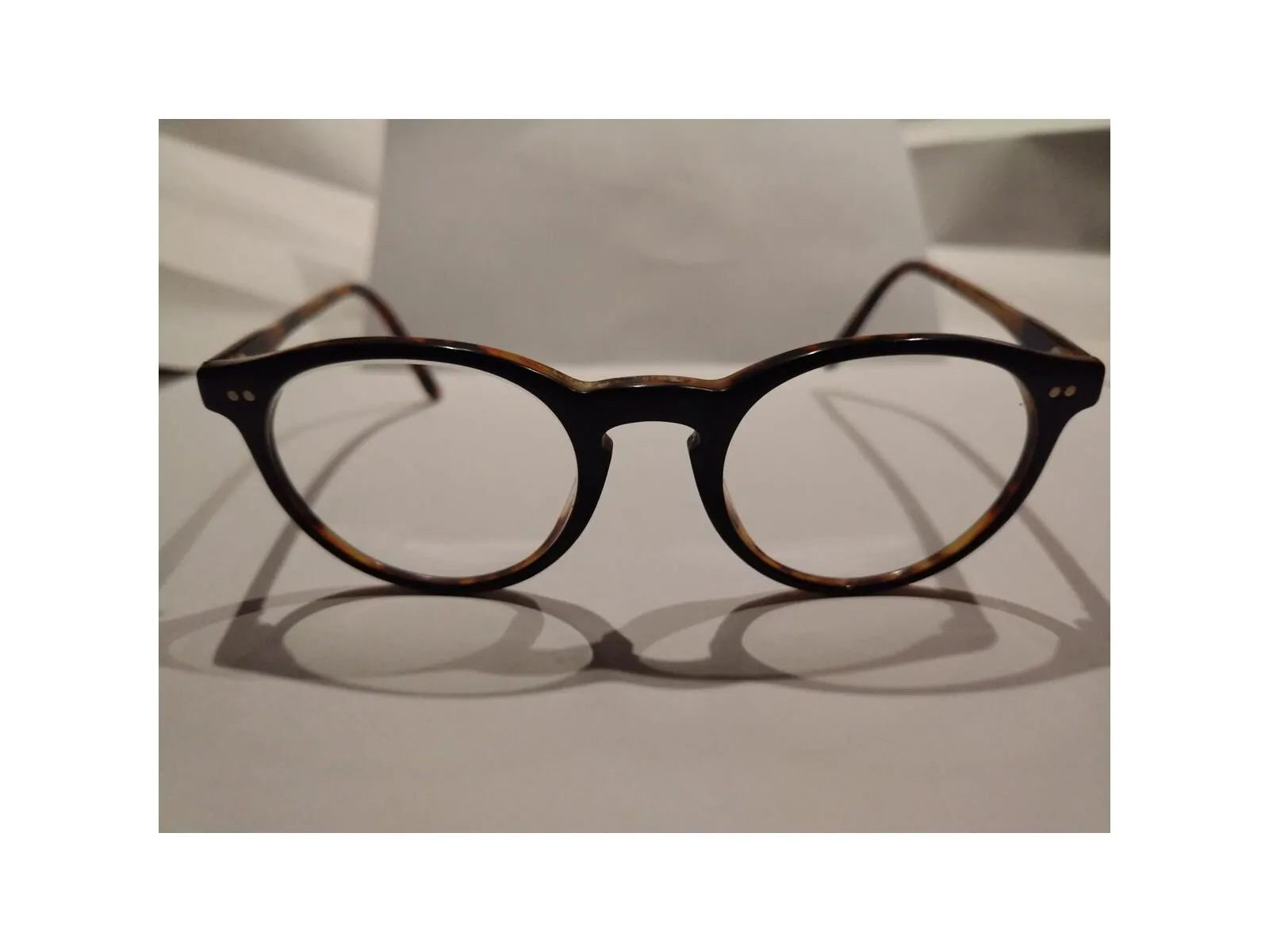 Les branches ont légèrement blanchies, tout comme la partie au dessus des verres, en raison de l'usage. Les branches se sont légèrement écartées, si bien qu'elles sont légèrement "tordues".